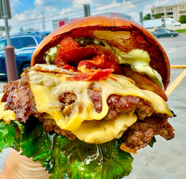 This was The Substitute burger at Bernie’s—a blue cheese bacon burger with what they called “tipsy” onions and burgundy mushrooms. This burger is truly GOATED, as the kids say (editor’s note: do they?), and if it were still around would easily occupy a slot in my top 5 of all time.